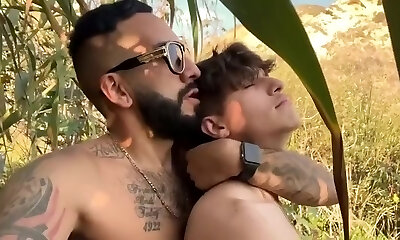 无辜的户外同性恋的乐趣变成一个硬无鞍的乐趣与3射精